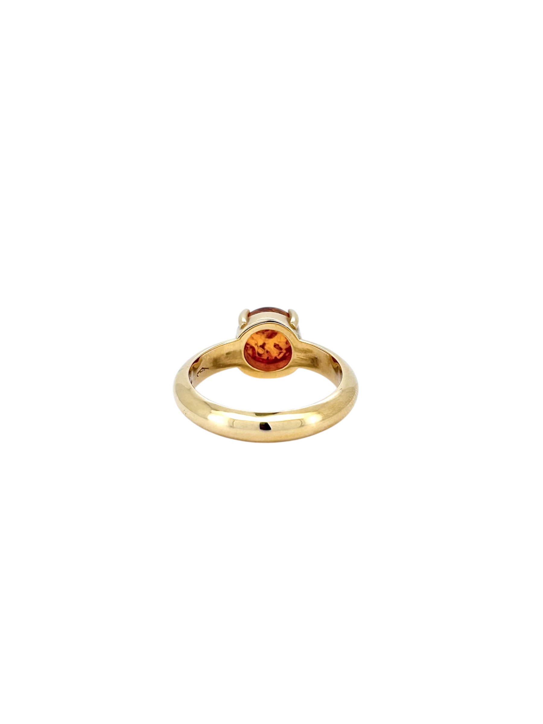 Auburn Collection. 18 kt yellow gold ring with cabochon-cut amber
