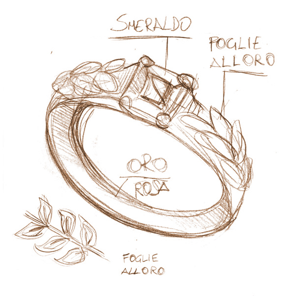 A sketch was immediately drawn up, allowing me to see what the final result would look like, and after a few days I was able to view a three-dimensional design of the ring, so detailed that it felt as if I could already wear it on my computer screen.