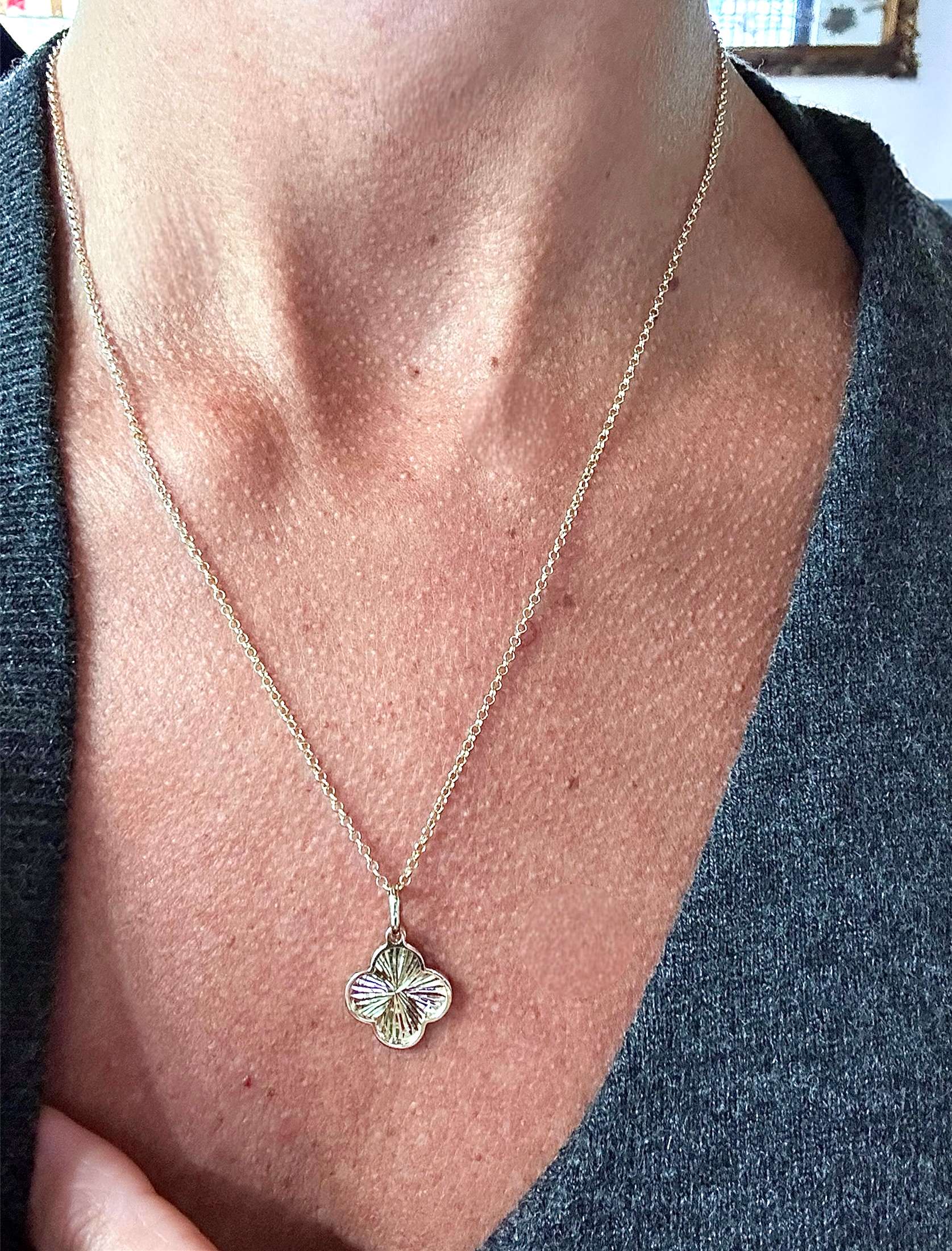 Collana rolò con Pendente quadrifoglio in oro 9 Kt