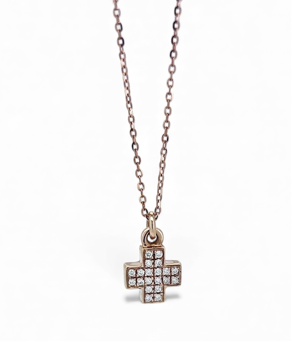 Croce squadrata in oro rosa e diamanti