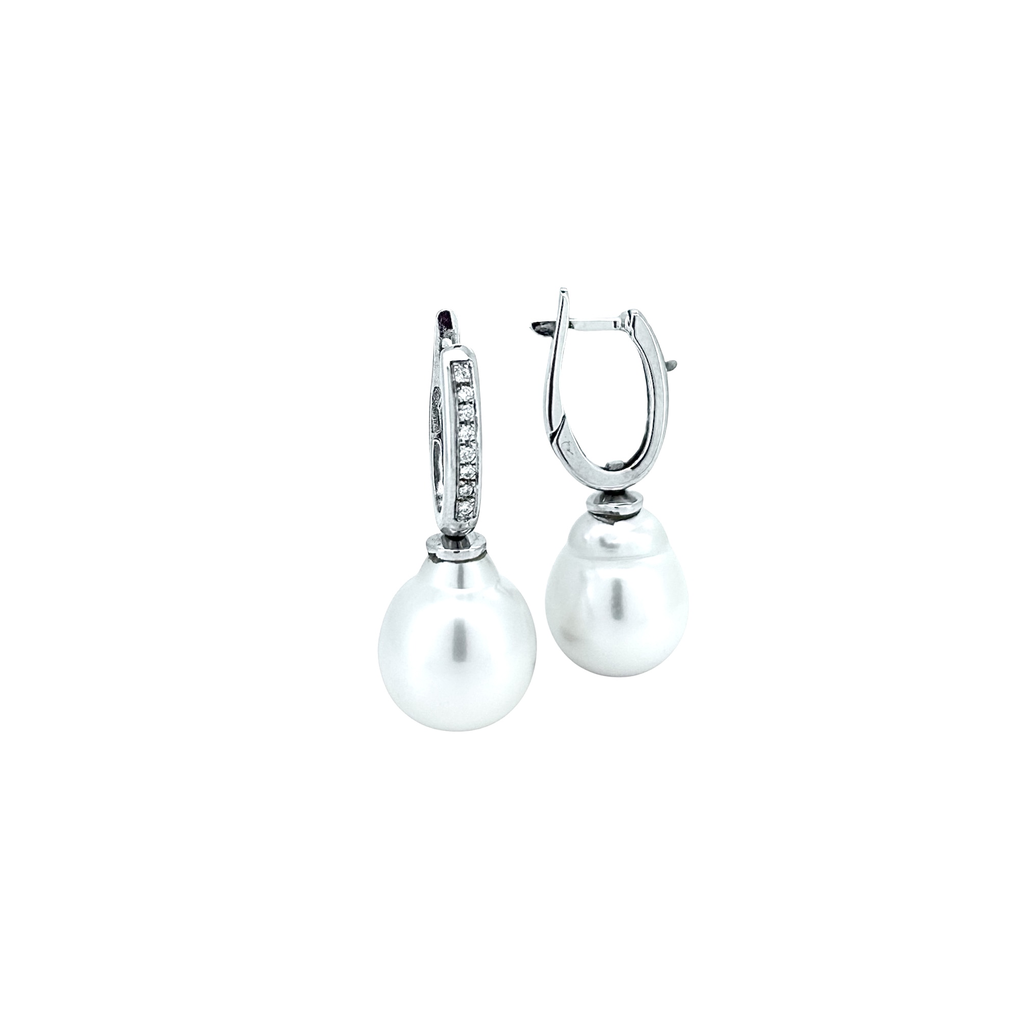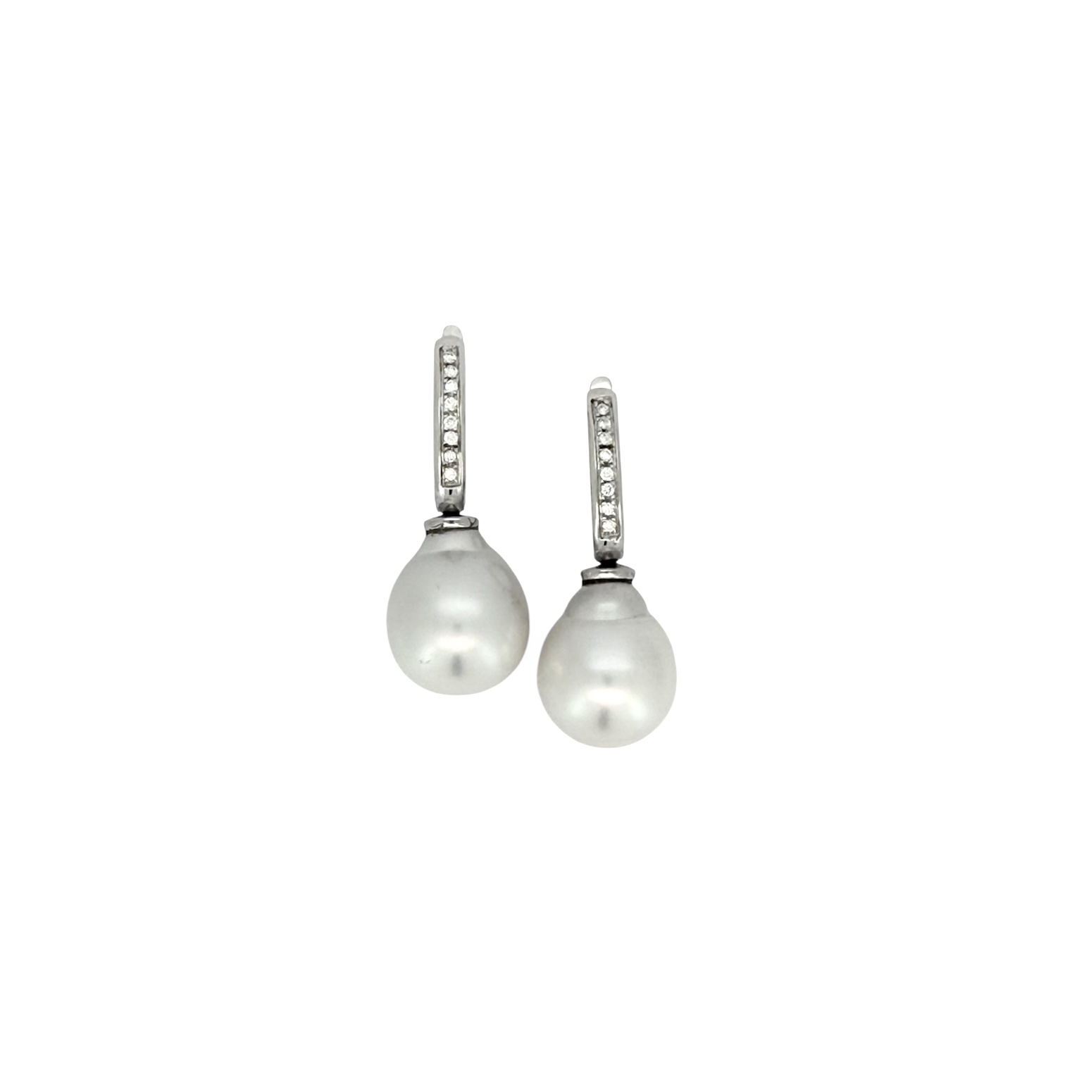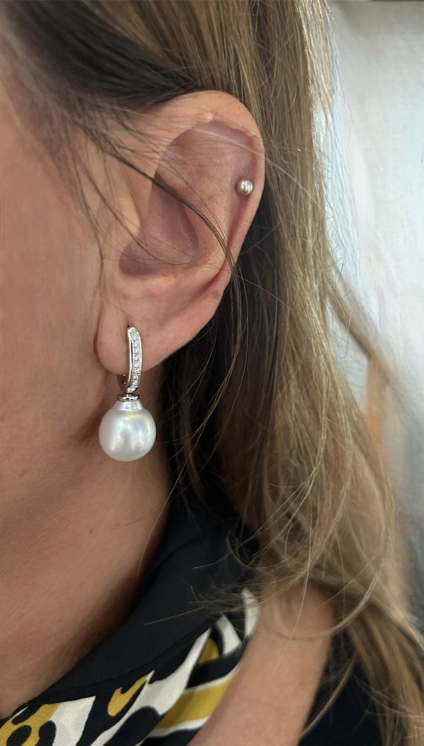 Orecchini in oro bianco 18 Kt con perle australiane barocche e diamanti