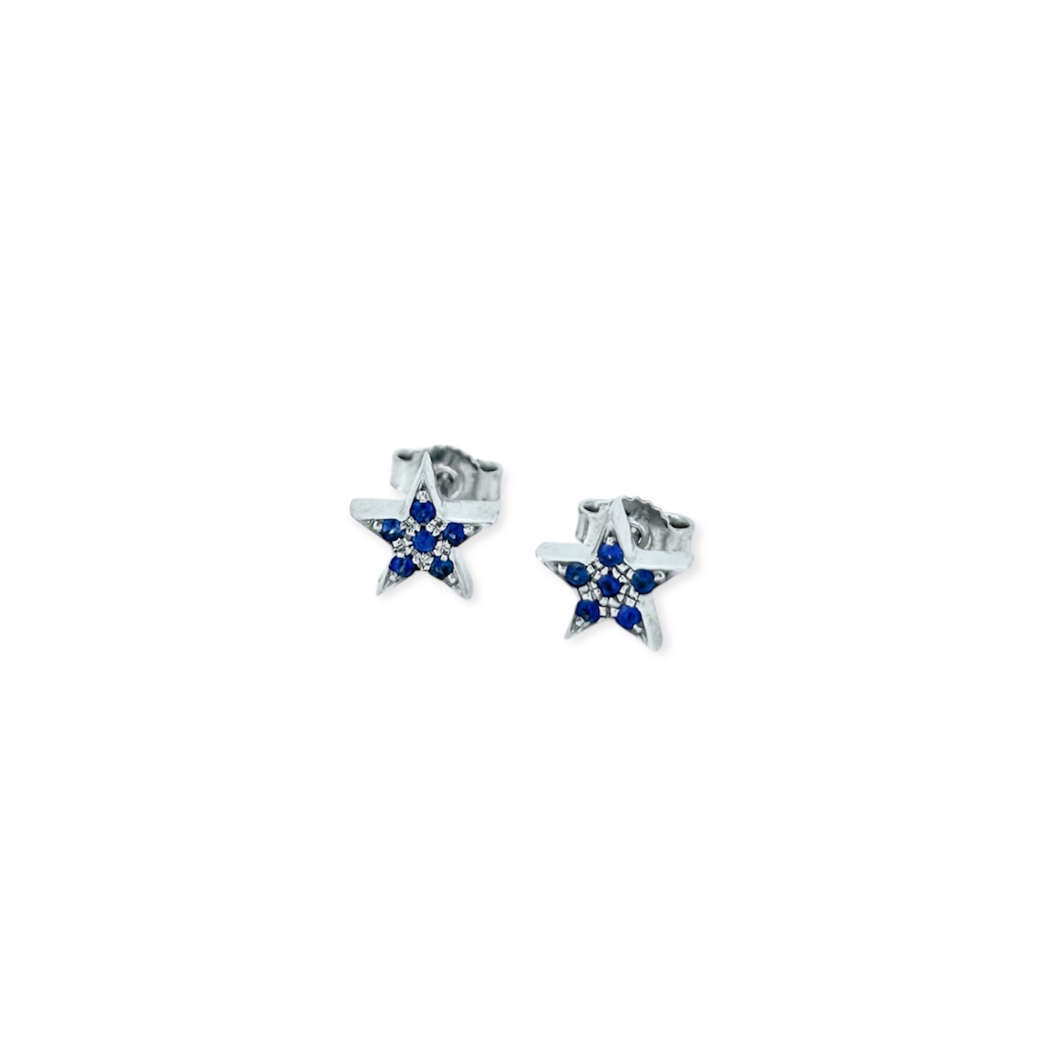 Orecchini stella in oro bianco 18 kt con zaffiri
