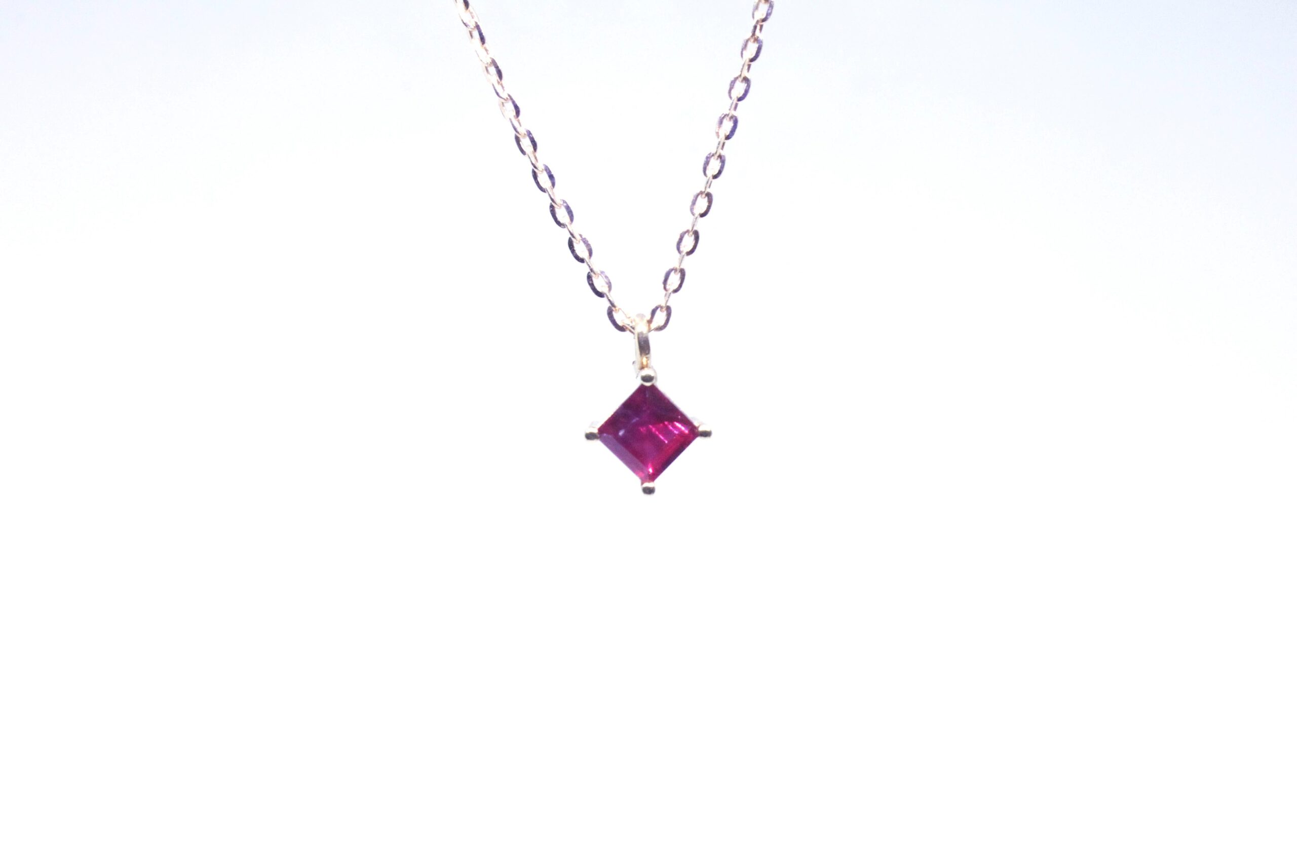 Pendente in oro rosa 18 kt con rubino taglio carrè